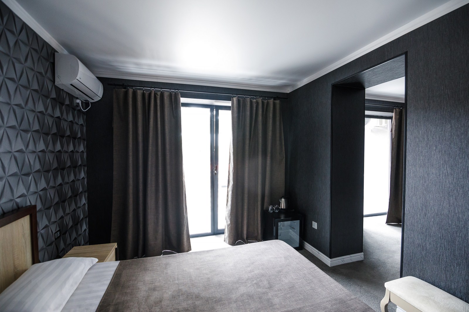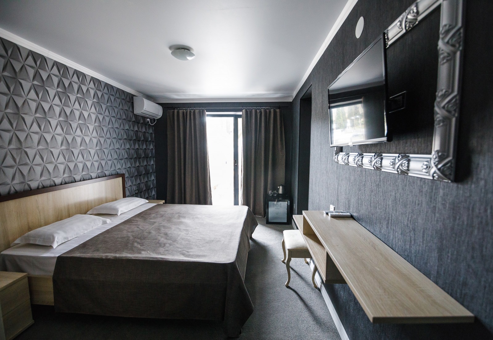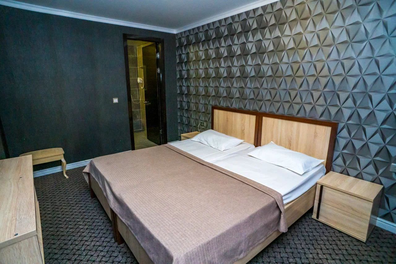2-х местный 2-х комнатный номер «Полулюкс» корпус №2Площадь номера: 36 м2Номер оснащен: 1 двуспальная кровать, мягкая мебель, телевизор, кондиционер, холодильник, 2 балкона.Санузел: душ, раковина, туалет.Максимальная вместимость- 4 чел.